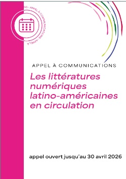 - Appel à communication Les littératures numériques latino-américaines en circulation19 février 2026 - 23 mars 2026Appel à communication pour la journée d'études "Culture et politique à l'épreuve dans les Amériques" 26-27 mai 2026 Lire la suite