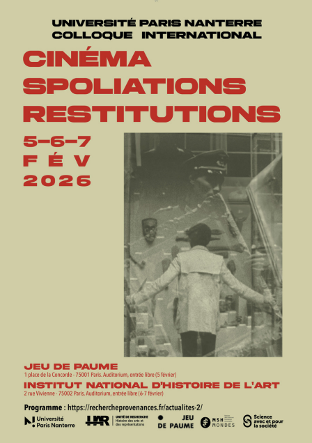Débutez avec le logiciel de gestion bibliographique Zotero2 février 2026 - 2 juin 2026 - Colloque international / Cinéma, spoliations et restitutions5 février 2026 - 7 février 2026Dans quels contextes peut-on parler de spoliation au cinéma ? Comment les films contribuent-ils à la pensée et aux imaginaires de la spoliation ou de la restitution ? Lire la suite